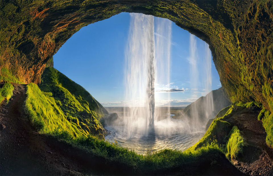 스바르티포스는 '검은 폭포'라는 뜻으로, 검은색의 주상절리 기둥들이 폭포를 둘러싸고 있어 매우 인상적입니다.