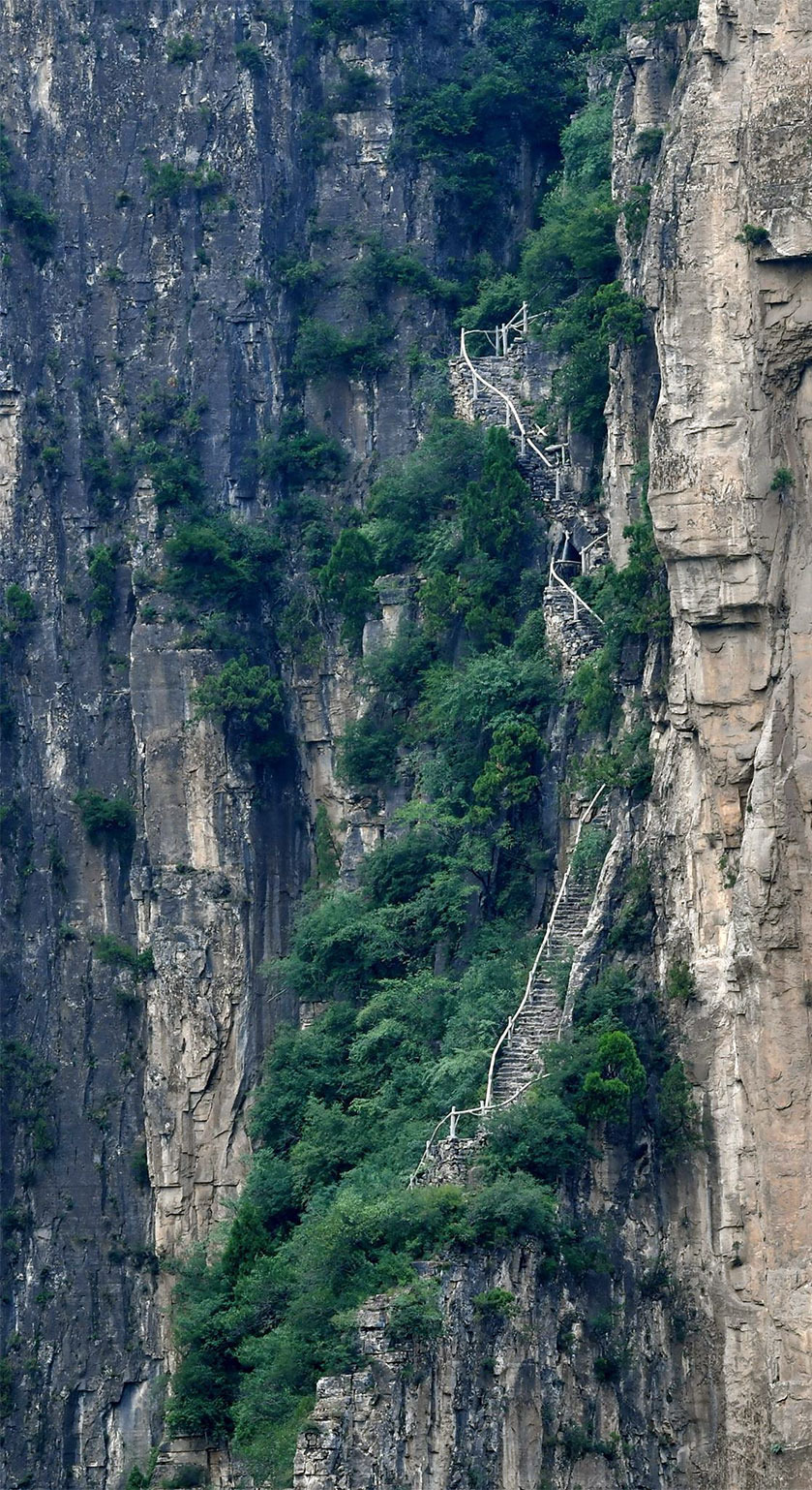 The Cat Road is located on a cliff in the Huguan Grand Canyon in Shanxi Province. Locals call it a road that cannot be walked after dark. It was the main road for ancient people to go to Ewu Township on the top of the mountain. It was called the Cat Road because of its difficult road. Today, although the two roads leading to Ewu have long been built, this ancient road is still the favorite crossing route for outdoor hikers.