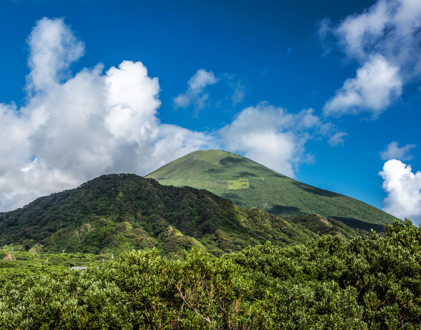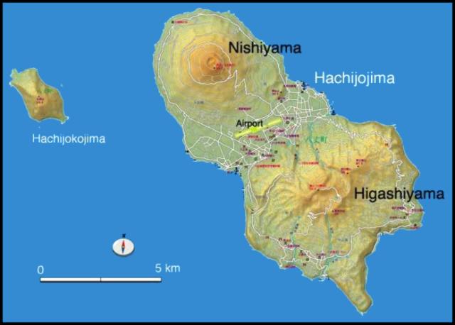 Hachijō-jima is a compound volcanic island that is 14.5 kilometres (9 miles) in length with a maximum width of 8 kilometres (5 miles). The island is formed from two stratovolcanoes.