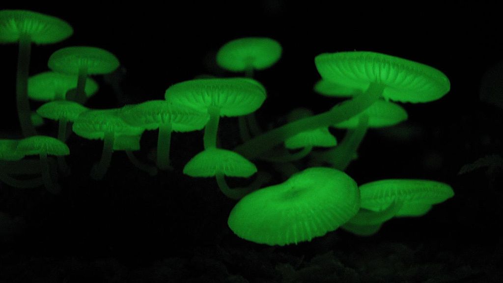 Bioluminescent M. chlorophos mushrooms in Hachijō-jima botanical park (ヤコウタケ・八丈島植物公園)