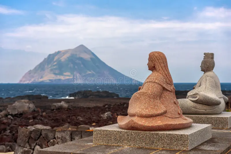 Hachijojima (large) and Hachijokojima (small) in Izu Islands, Tokyo, Japan.
