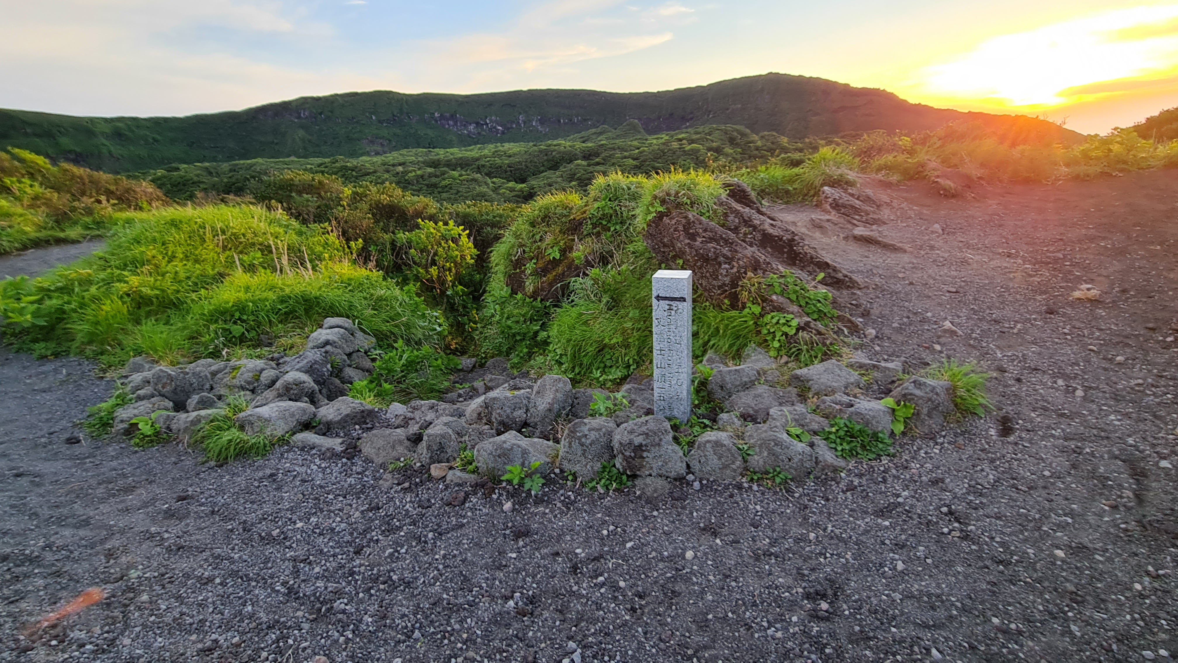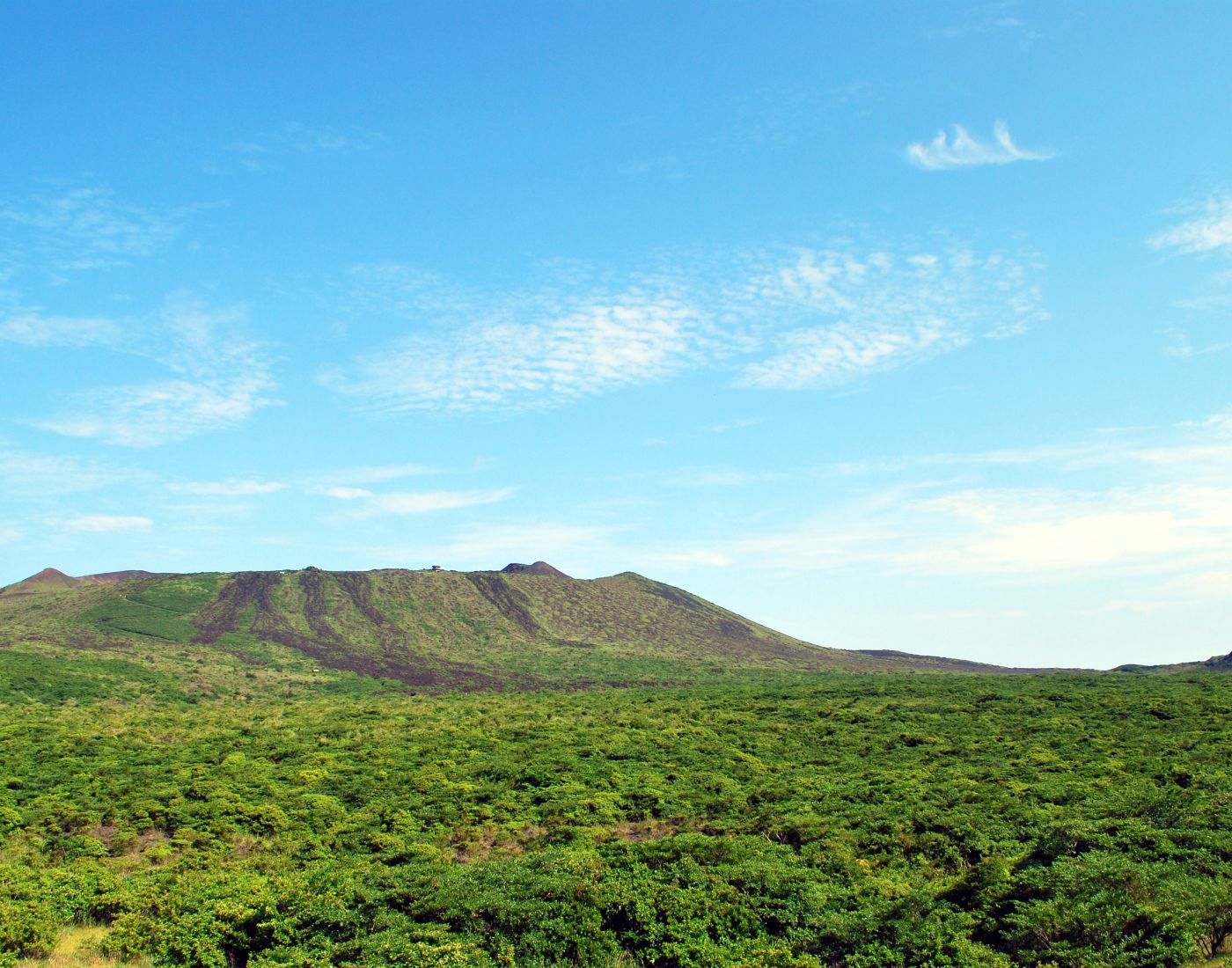 Higashi-yama (東山)—also called Mihara-yama (三原山)—has a height of 701 m (2,300 ft) and was active from 100,000 BC to around 1700 BC.