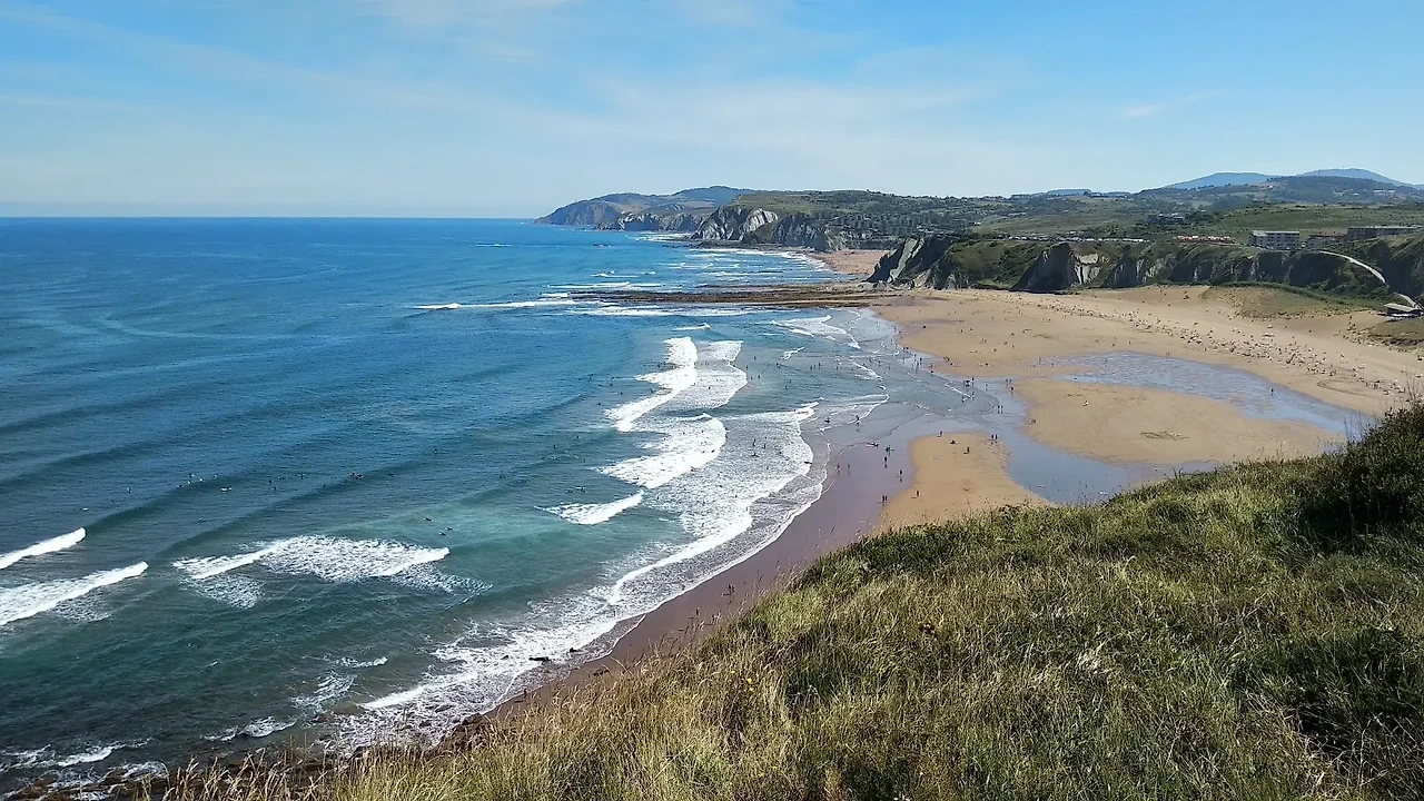 Scenic view of majestic Atxabiribil beach, Sopela, Spain