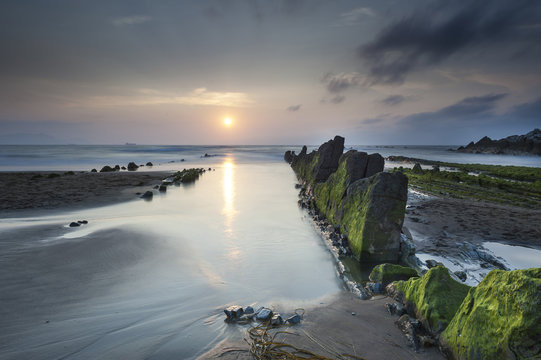 Rocks With Silky Water In Sopelana Beach Sopelana Spain